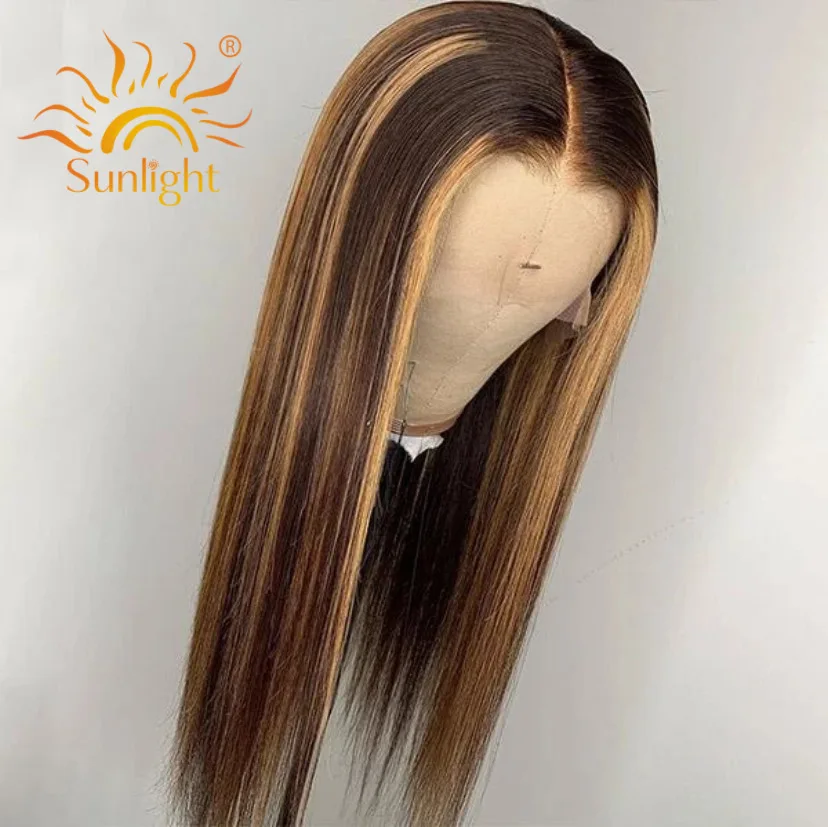 Sunlight brazilian straight wig color hair extensions 427 front lace wigs 36 38 42 inch straight virgin brazilian human hair