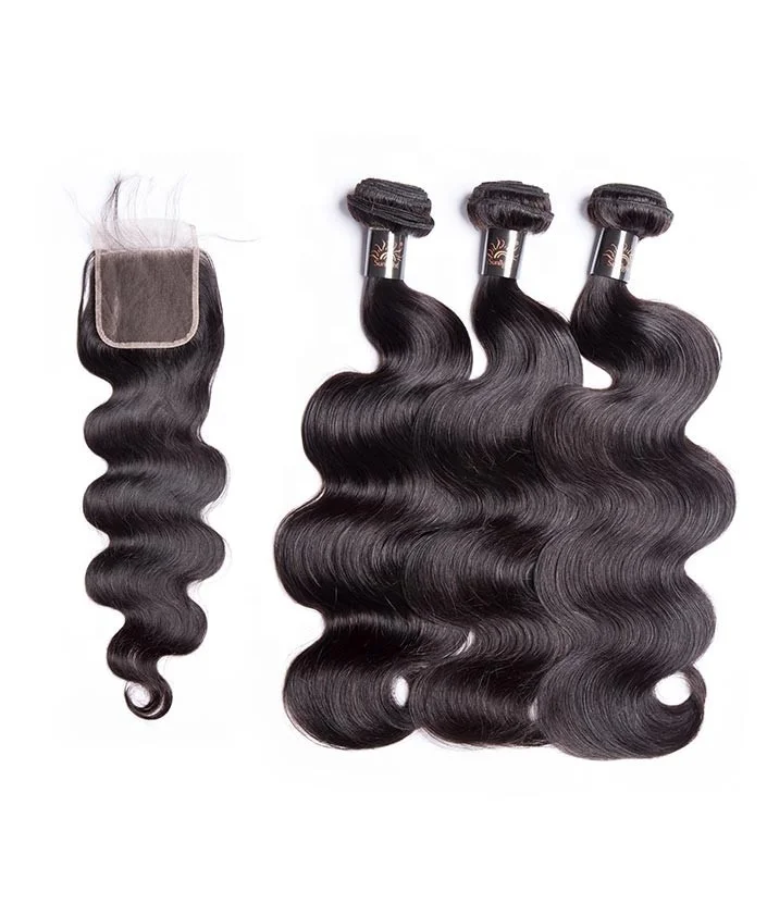 Sunlight Factory price1b body wave virgin hair extension human 100% brazilian extension 3bundles with closure human hair weave