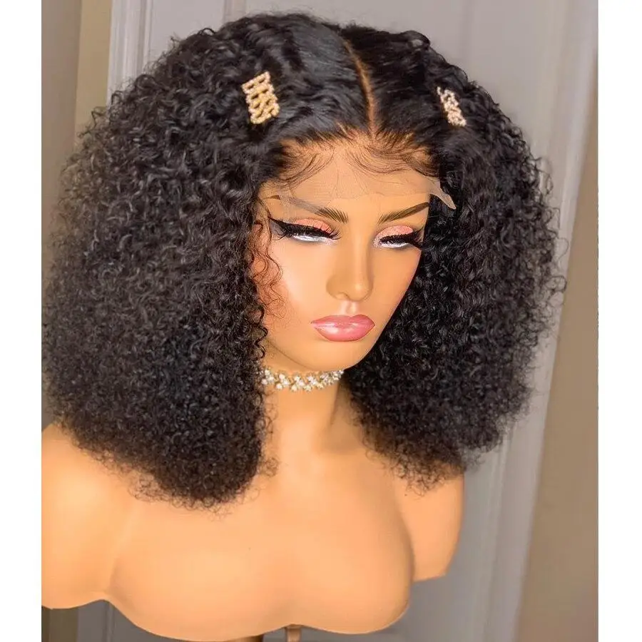 13*4 lace bob, machine hair wig, curly bob, one kinky curly bundles, 150 density13x4Lace Front