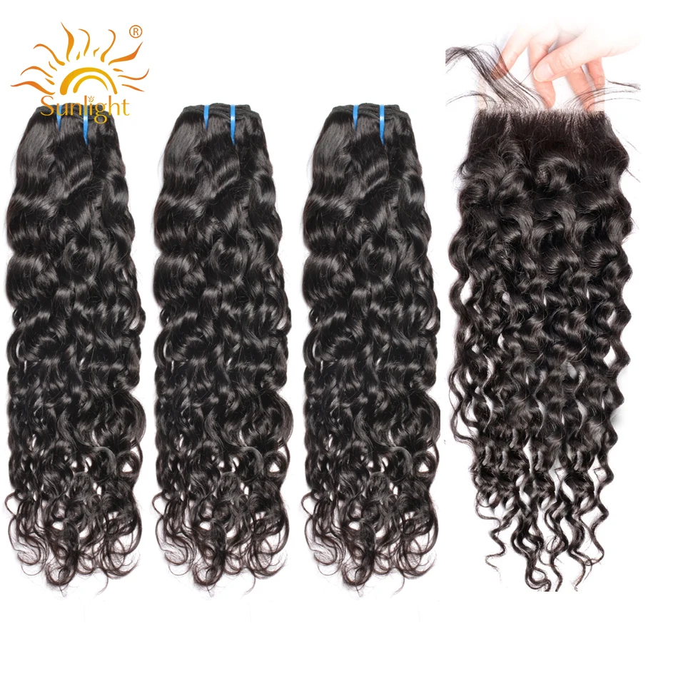 Sunlight Hair Loose Water Wave Lace Closure Brazilian Hair 4″x4″ Free Part Swiss Lace 8-22 Natural Black Remy Human Hair