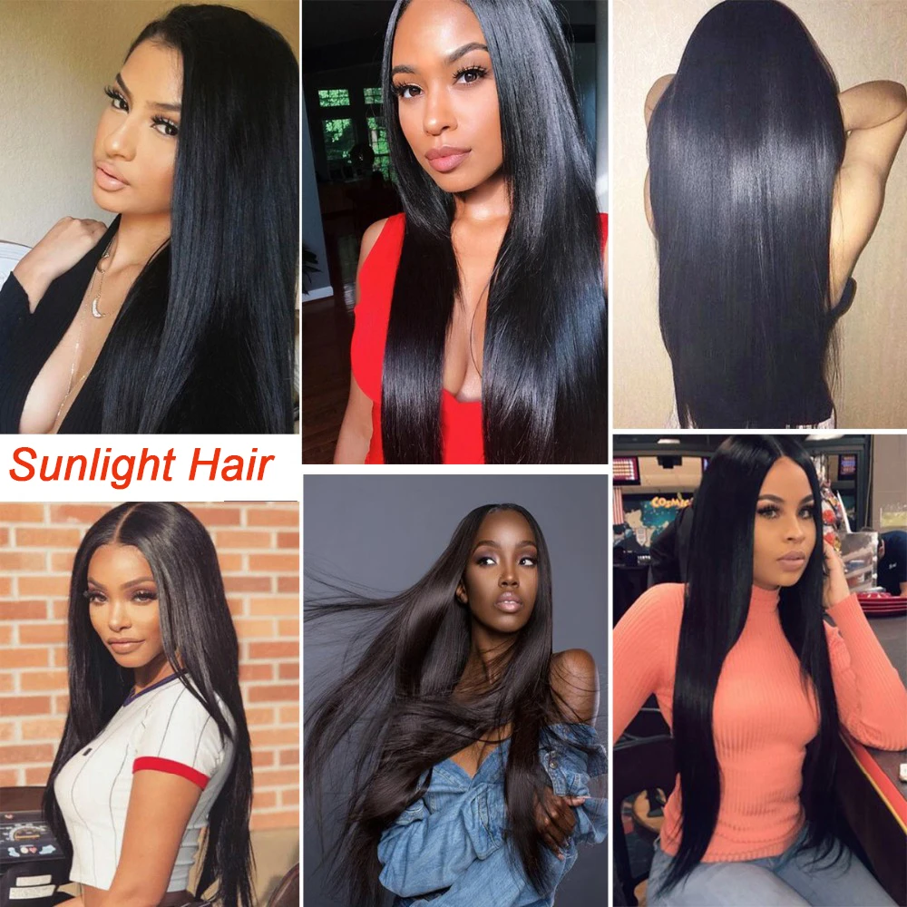 Sunlight human hair bunldes 16 18 20 inch straight human hair weave Indian Remy Straight Hair Bundles