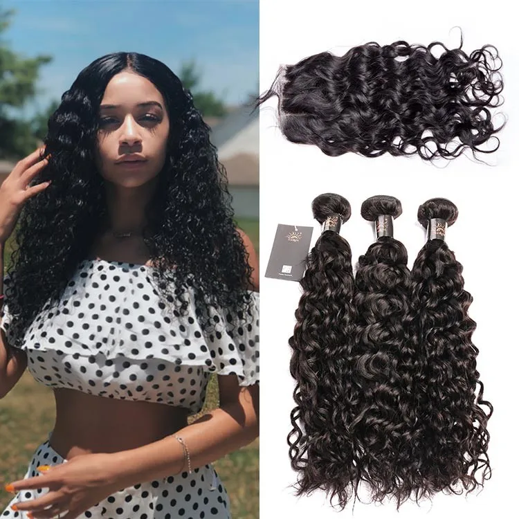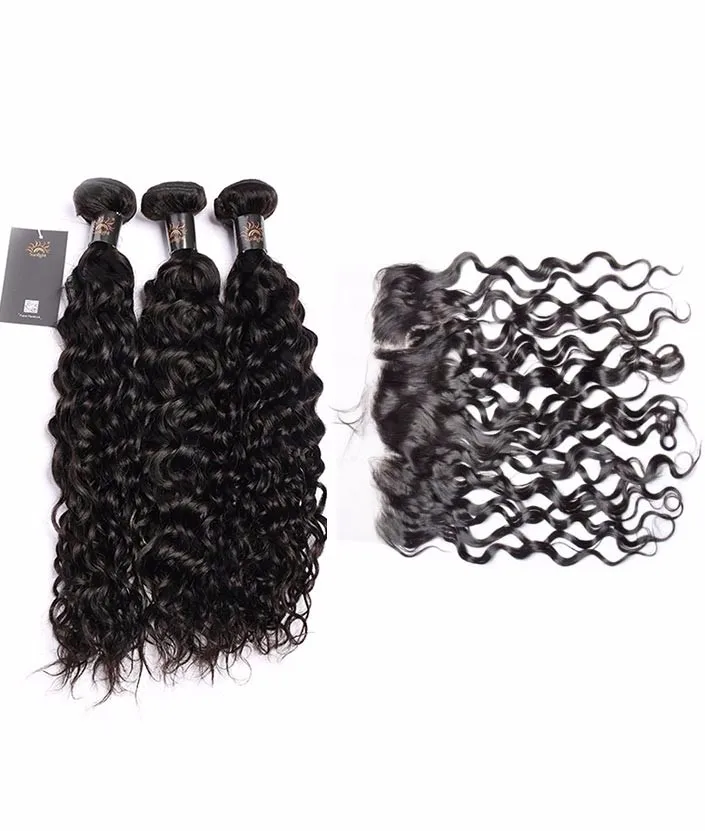 3Bundles Brazilian Water Wave Hair With frontal Human hair, human hair water wave bundles with closure,Human Virgin Hair Weave