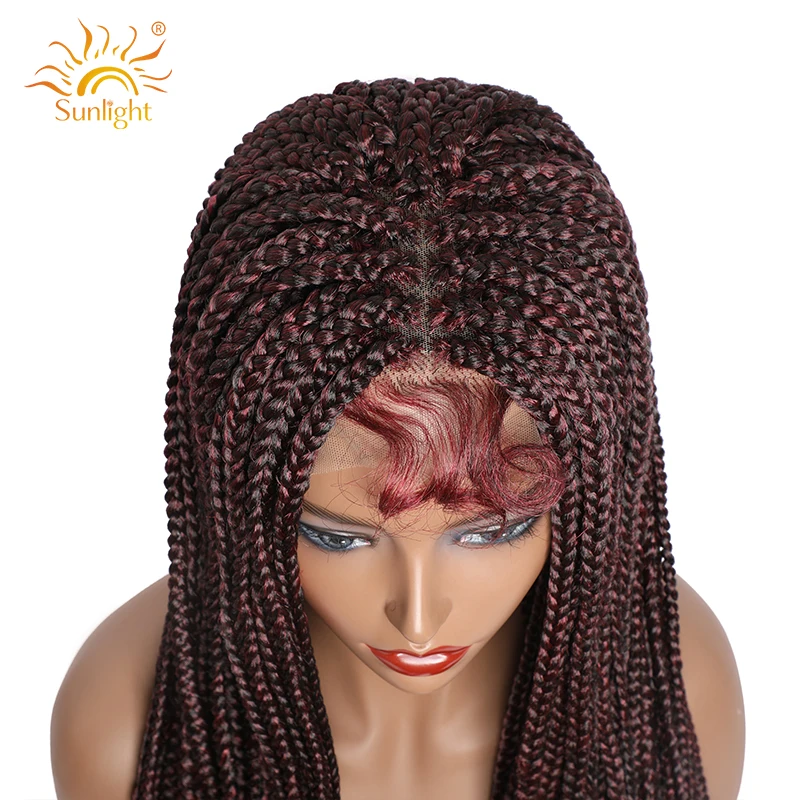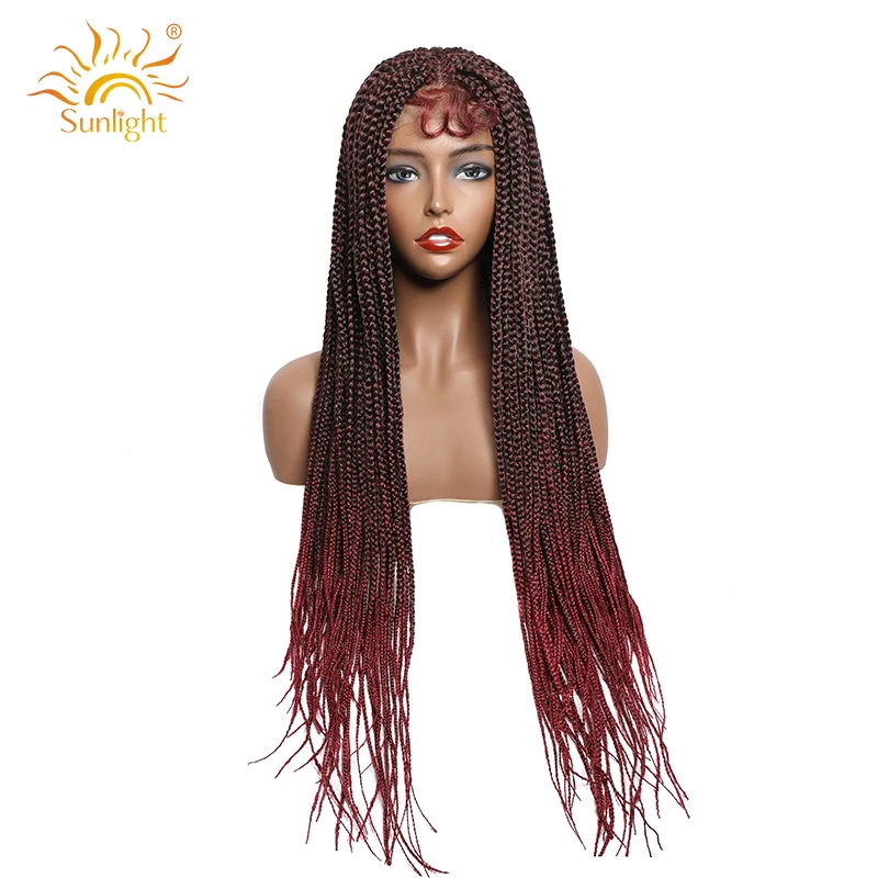 Sunlight Lace Vendors Synthetic ombre hair Front Frontal Closure High Temperature Braiding hair Braided Wigs For Black Women