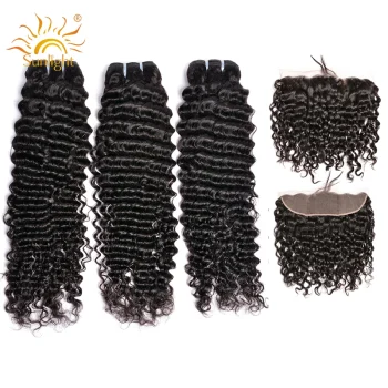 Wholesale fast shipping Sunlight 100 Human Hair curly 10A grade 3Bundles Real Mink Brazilian Deep Curly Hair With HD Closure
